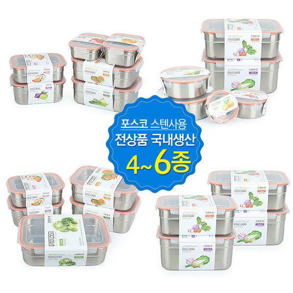 Kitchen Art stainless steel sealed container side dish container art rock set, mixed 6-piece set / 키친아트 스텐밀폐용기 반찬통 아트락 세트, 혼합 6종세트