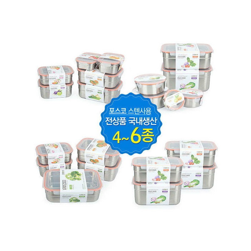 Kitchen Art stainless steel sealed container side dish container art rock set, rectangular 5-piece set / 키친아트 스텐밀폐용기 반찬통 아트락 세트, 직사각 5종세트