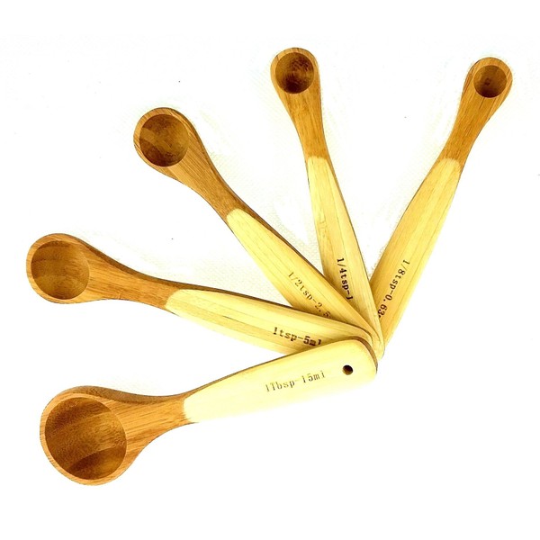Kitchen Bamboo Wood Measuring Spoons for Measuring Dry and Liquid Ingredients, Pack of 5