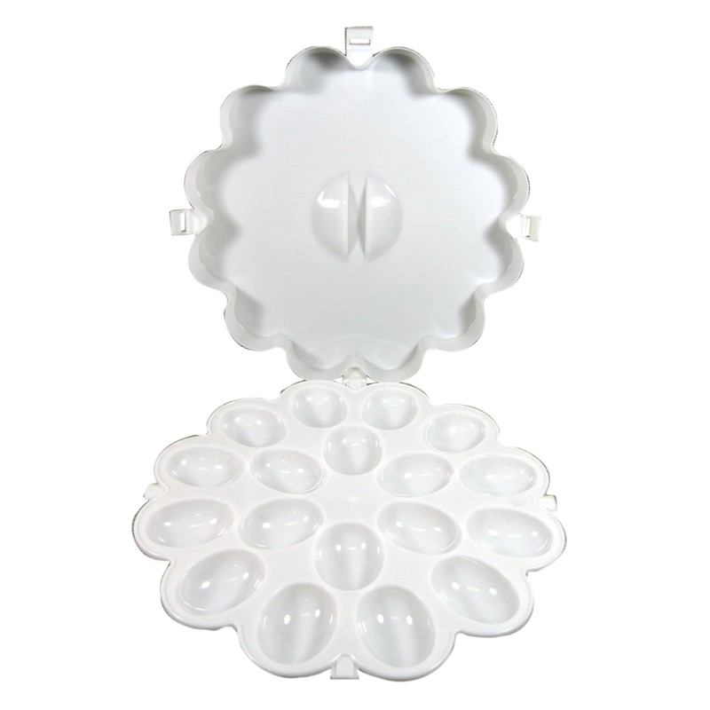 - Durable Design: Crafted from sturdy white melamine, this egg holder with lid resists wear and tear, making it a reliable addition to your kitchen or outdoor dining collection.