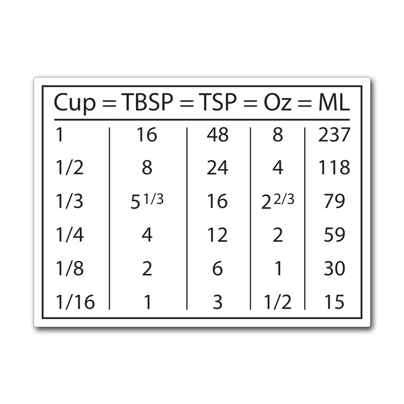 - Kitchen Conversion Chart Magnet - Easily use this tbsp to cup conversion chart as a measuring cups hack when you are in the kitchen. The magnet measures approximately 4x3 inches and includes adhesive stickers for nonmagnetic surfaces.