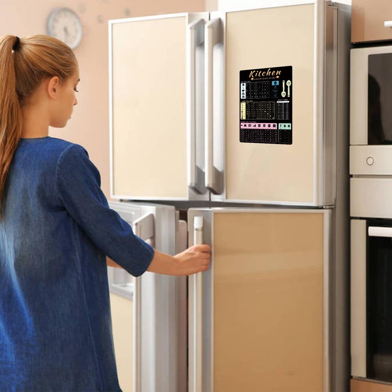 - Easy to apply: The magnetic chart can be attached to any magnetic surface at any time and can be safely and quickly moved to refrigerator doors and cabinets. When cooking or baking, you can easily control the amount of ingredients needed.