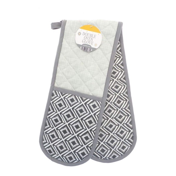 Kitchen Cooking Padded Heat Resistant Double Oven Fun Pattern Mitt Mitten Gloves (Grey Global Geo)