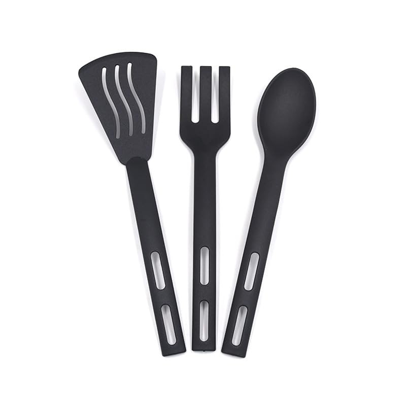 Kitchen Cooking Tools 3Pcs Mini Nylon Kitchen Utensils Set Slotted Turner Solid Spoon Fork Children Dinner Tools (black)