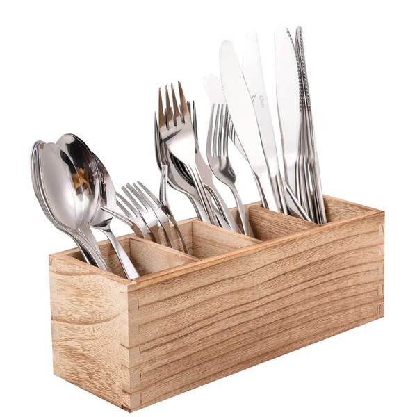 - 【PERFECT FOR STORAGE】 The wood kitchen utensil holder can store everyday utensils, teaspoons, soup spoons, forks, knives, and various serving pieces, as well as cooking utensils and tools like tongs, can openers, and food thermometers. Make your supplies more organized, erect, and easy to access.