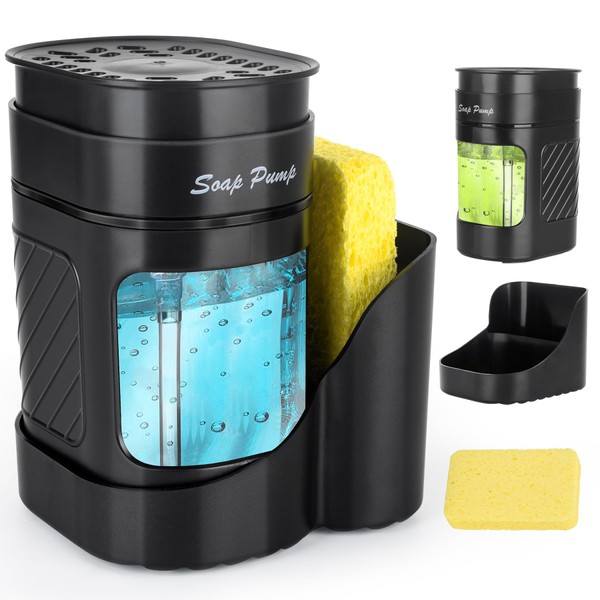 - LARGE CAPACITY & EASY DISPENSING: Sponge soap dispenser only needs to gently press down with one hand to dispense an appropriate amount of soap onto the sponge, extremely easy to use and helps reduce soap wasted. The dish soap dispenser has a capacity of 14.5 ounces so that you don't need to refill it frequently, And suitable for all kinds of liquid soap.