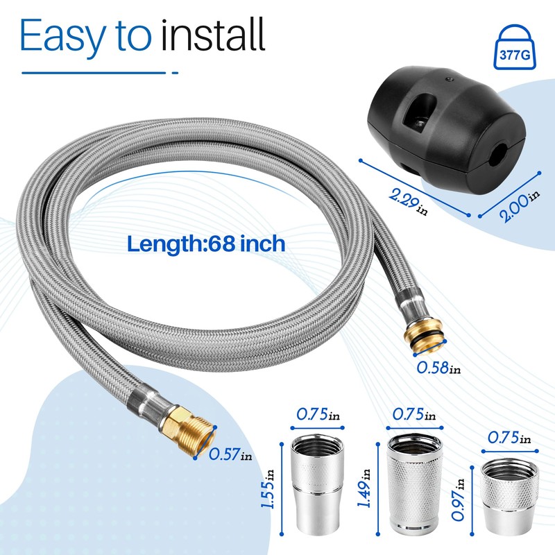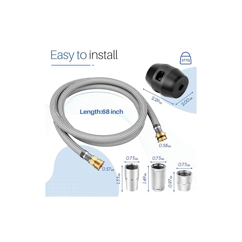 The flexible hose is easy to install. Strong brass end fitting can quick connector hose to sink faucets and water inlet, solve your kitchen faucet leaking problem. A great kitchen faucet hose replacement parts for your grohe flexible shower.