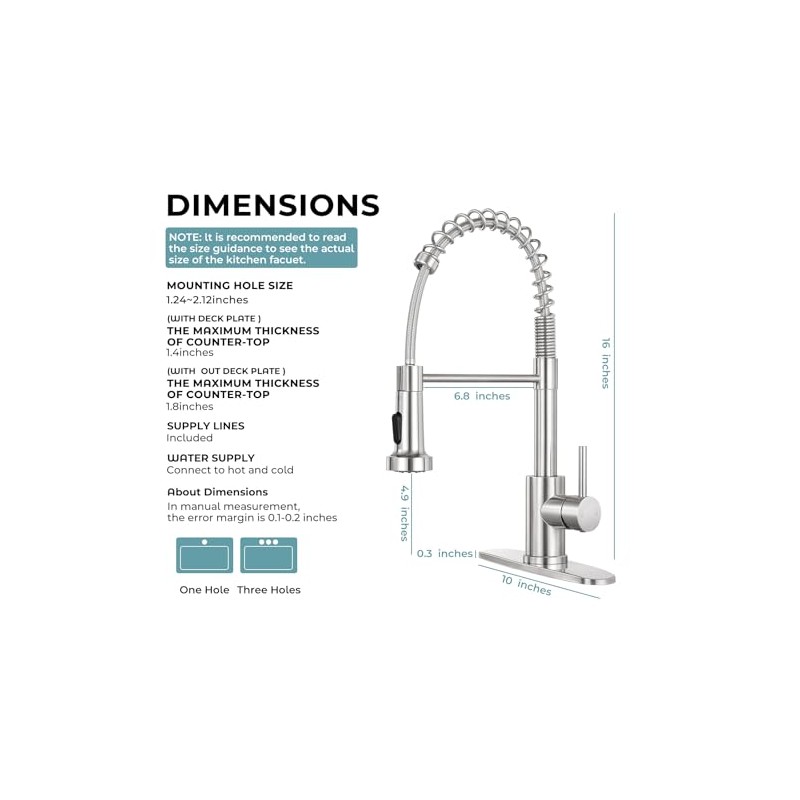 - Overall height: 16.2"; Spout Height: 4.9", Faucet will come with all the mouting hardware, 3/8" H & C water hoses includ, you can diy your installation without a plumber to save money and time