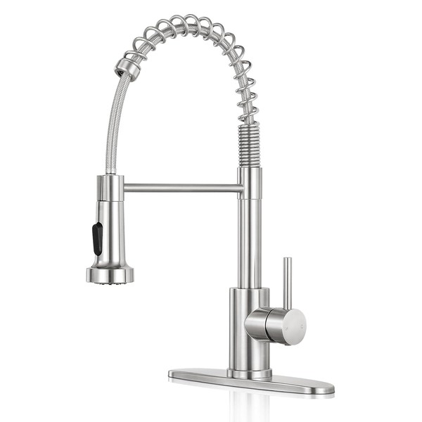 Kitchen Faucet with Pull Down Sprayer,Commercial Single Handle Stainless Steel Kitchen Faucets with Deck Plate (Brush Nickel)