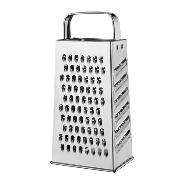- 1. Wide application: the stainless steel square grater offers a wide range of uses with its 4 different grating surfaces. Ideal for grating cheese, vegetables, fruit, chocolate, nutmeg and much more.