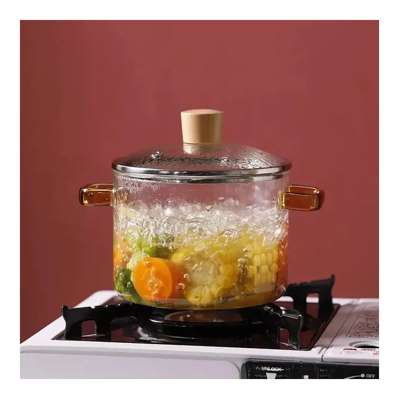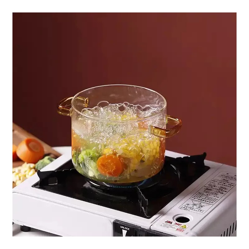 Kitchen Heat Resistant Soup Pot High Borosilicate Cooking Glass Pot Great For Gift - 3 Liter Clear