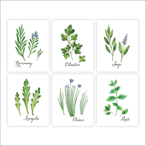 Kitchen Herbs Art Prints (Set of 6) - Unframed - 8x10s | Botanical Prints Wall Art