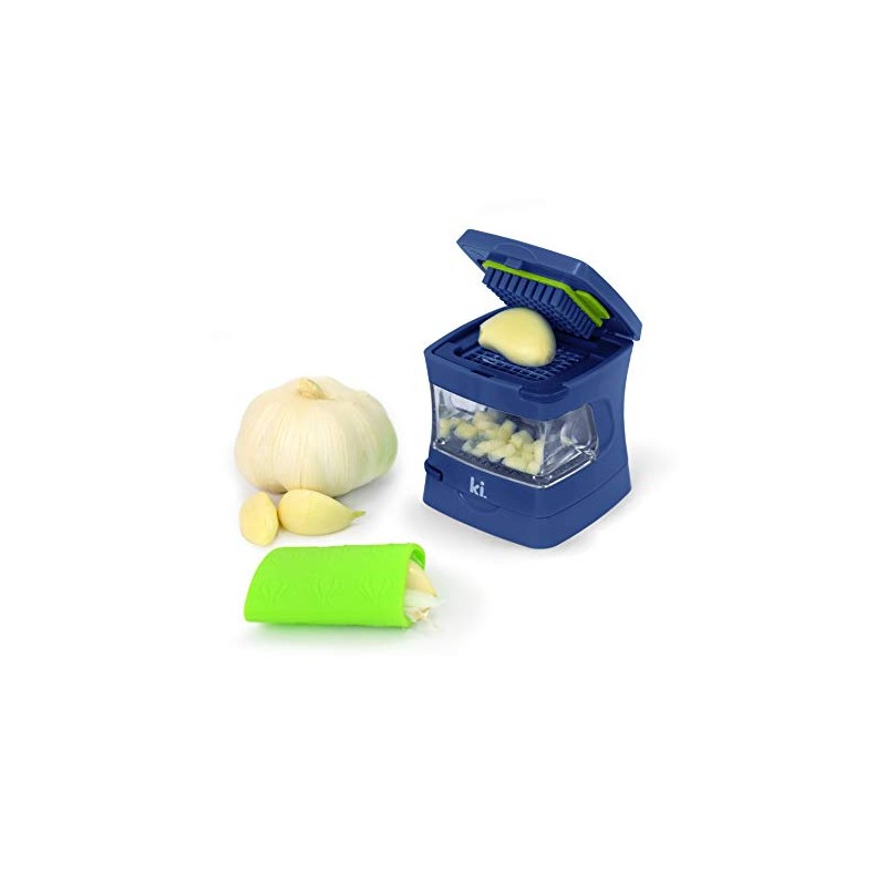 - Peel, slice, dice and grate garlic with this innovative garlic tool with silicone peeler and 2 interchangeable blades; Dicing blade creates cube shaped garlic and slicing blade creates longer and thinner garlic; Clear container contains raised teeth for creating the perfect garlic paste