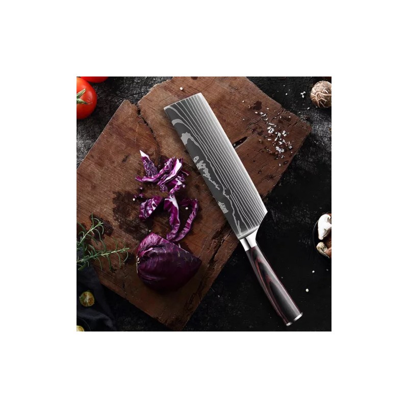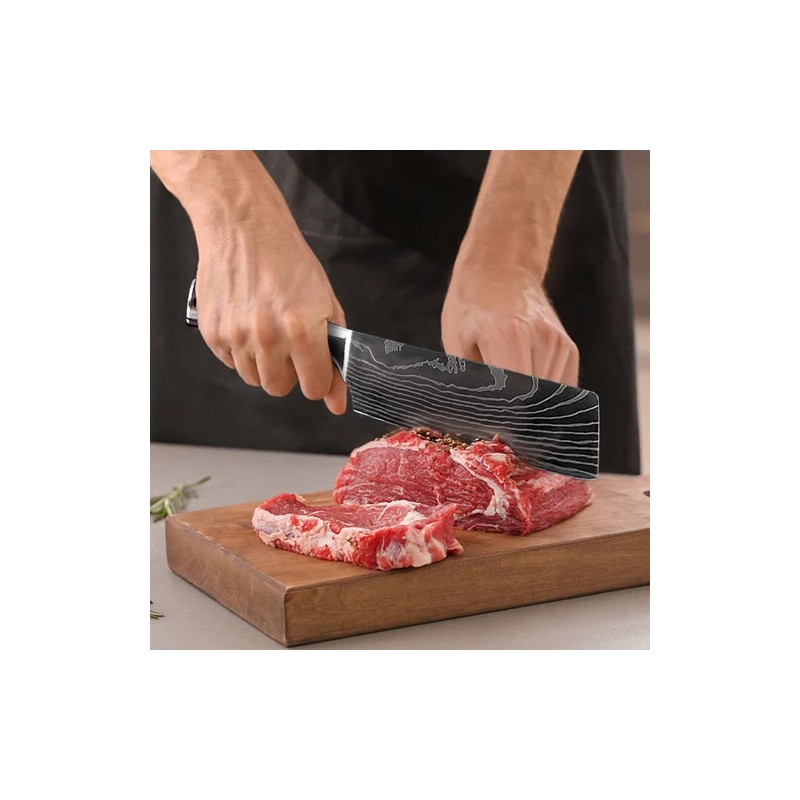 - Set Includes: Chef's Knife, Cleaver, Gyuto Knife, Knife Set, Nakiri Knife, Santoku Knife, Vegetable Knife