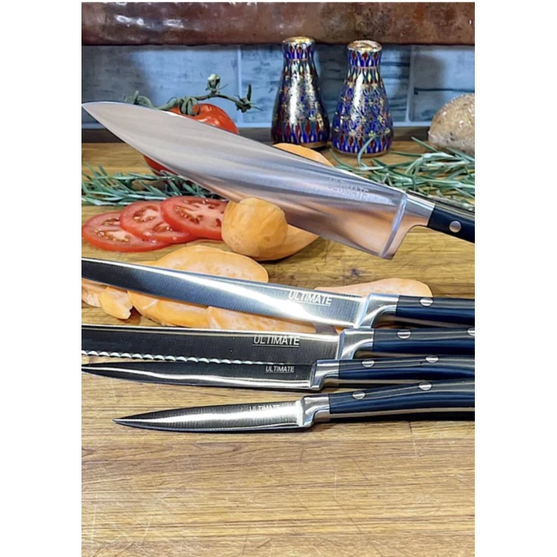 - Set Includes: Bread Knife, Butcher Knife, Chef's Knife, Paring & Peeling Knives, Slicer