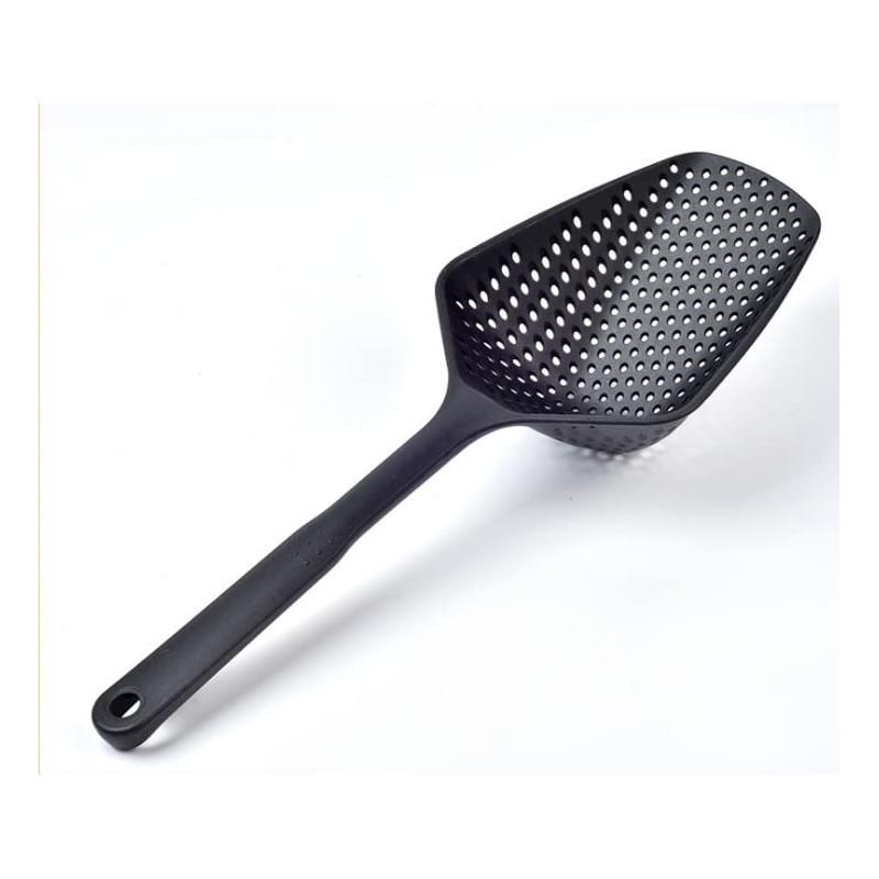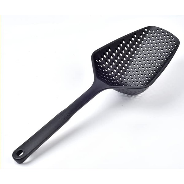 Kitchen Nylon Strainer Scoop Colander, Skimmer Spoon with Long Handle, Drain Shovel Strainers, Water Leaking Shovels Ice Shovel Colanders (Black)