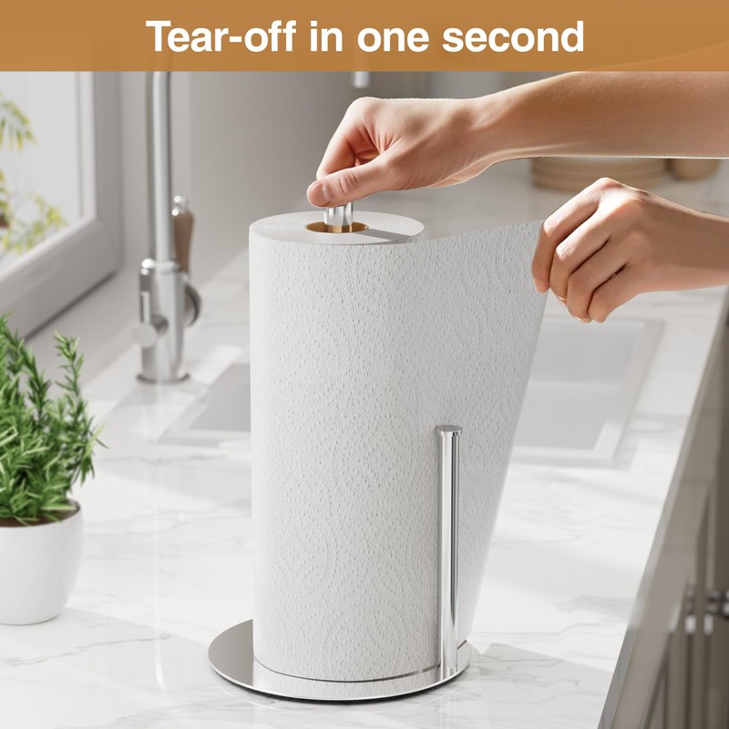 - Stable base: the base with non-slip silicone pads on the bottom prevents slipping during the use of paper towels and prevents your valuable worktop or table surface from being scratched.