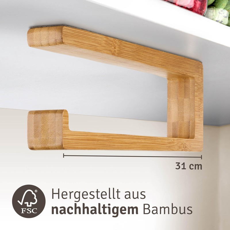 - More space in the kitchen: with this stylish holder made from sustainable FSC bamboo wood, you can store your kitchen paper in your kitchen to save space.