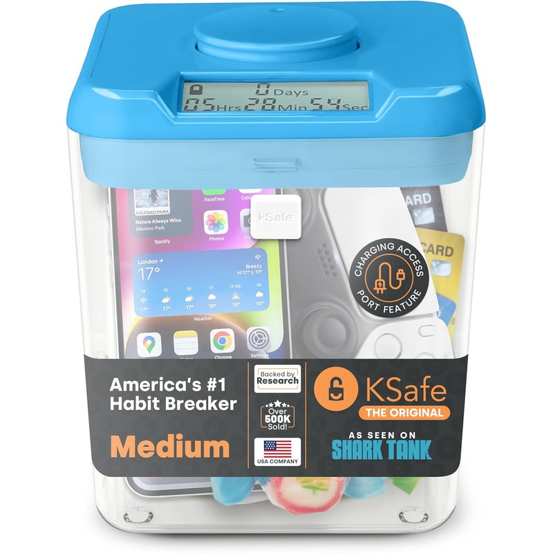 - BUILD BETTER HABITS: Creating genuine changes in our habits requires willpower, and oftentimes we don’t have the internal motivation. That is okay, we know it's tough to break bad habits. Once it’s set, the kSafe locking timed container will not reopen until the timer hits zero. The timed safe can be set up to 10 days and is your external motivation to cut back on your addictions and build habits to live a happier life.