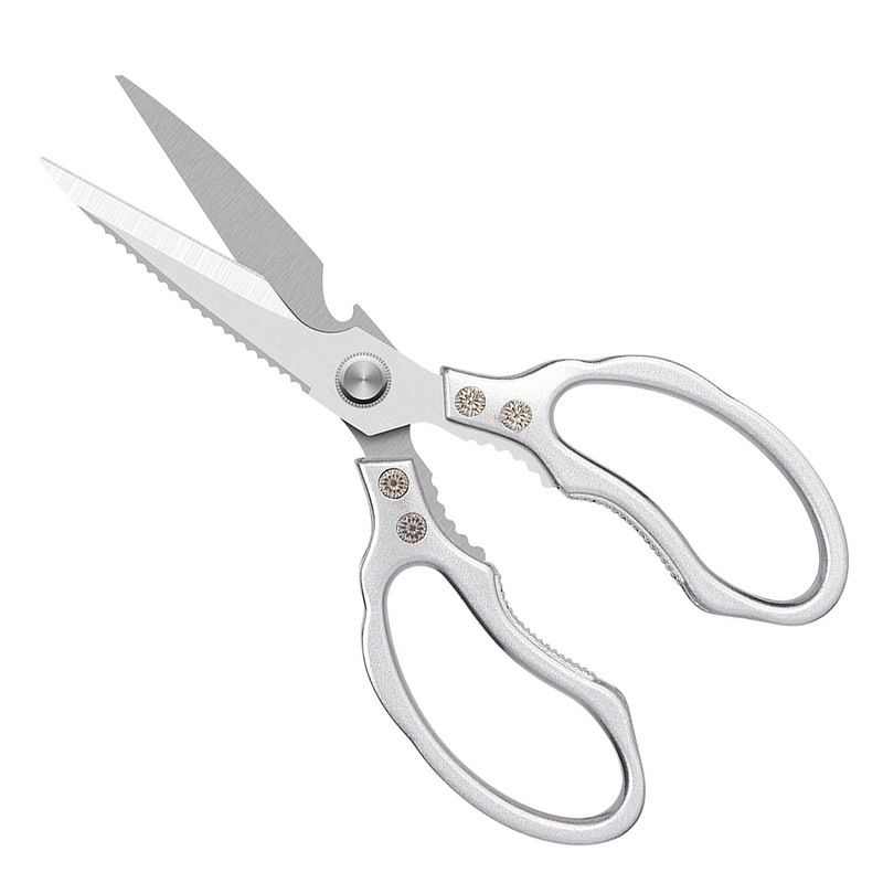 - The large kitchen scissors’s handle is made of Zinc alloy and ergonomically curved designed for comfortable grip, anti-slip.