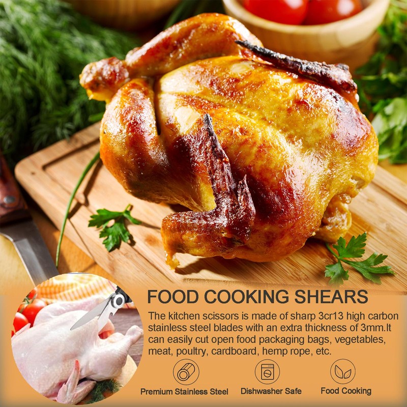 - 【Multipurpose Scissors for Various Tasks】These kitchen shears are designed to handle multiple uses in the kitchen. It is not only for Clipping walnuts, Cutting chicken, cutting vegetables, spices, Or scaling fish, but you can even use it to cut plastic bag, fabric, or use it as a bottle opener. They offer a wide range of functionalities, making them an indispensable tool for your culinary adventures. Discover the convenience and versatility of our scissors for a variety of cooking tasks.