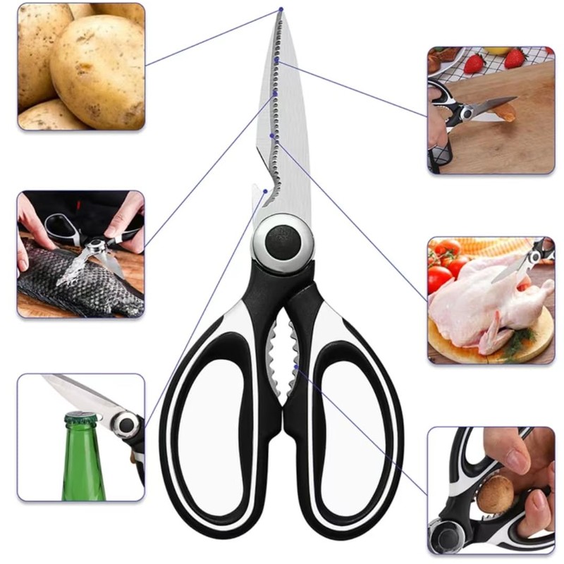 - 【Multipurpose Scissors for Various Tasks】These kitchen shears are designed to handle multiple uses in the kitchen. It is not only for Clipping walnuts, Cutting chicken, cutting vegetables, spices, Or scaling fish, but you can even use it to cut plastic bag, fabric, or use it as a bottle opener. They offer a wide range of functionalities, making them an indispensable tool for your culinary adventures. Discover the convenience and versatility of our scissors for a variety of cooking tasks.