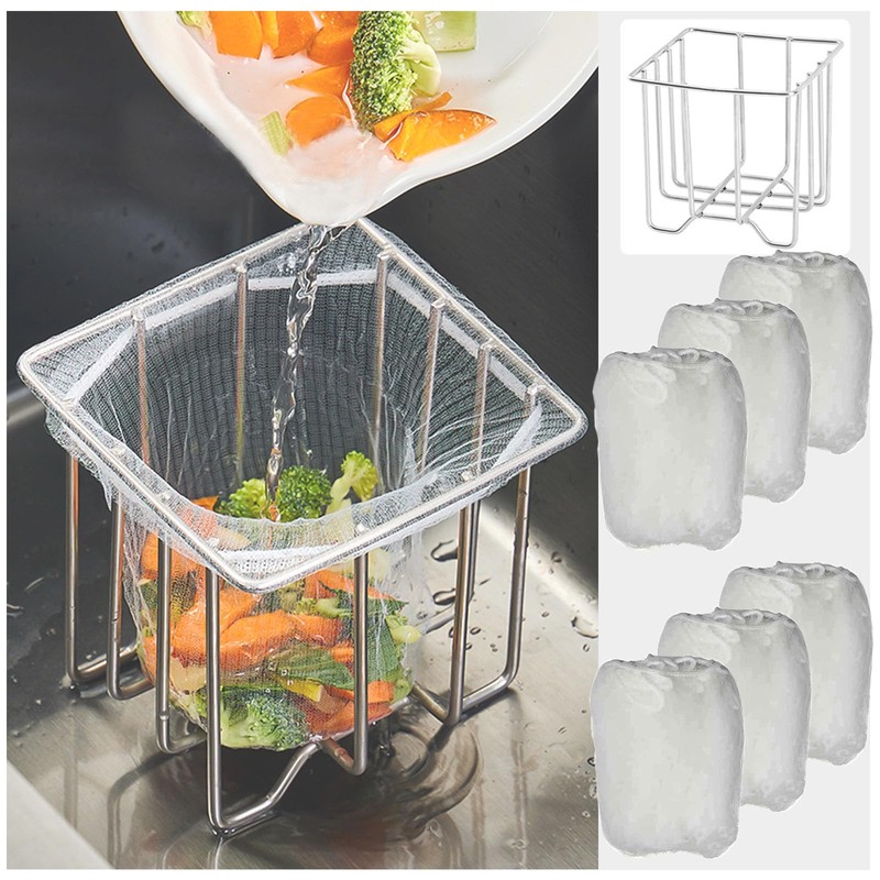 - 【No Need Install】: The food catcher for sink drain no need install,Just place the sink strainer basket holder at the bottom of the sink and put a sink net bag on it,then you can easily filter and catch the food garbage,leftover,peel etc.it is suitable for all sinks.When not in use, it can be moved freely and placed in a more suitable place without taking up space in the sink.