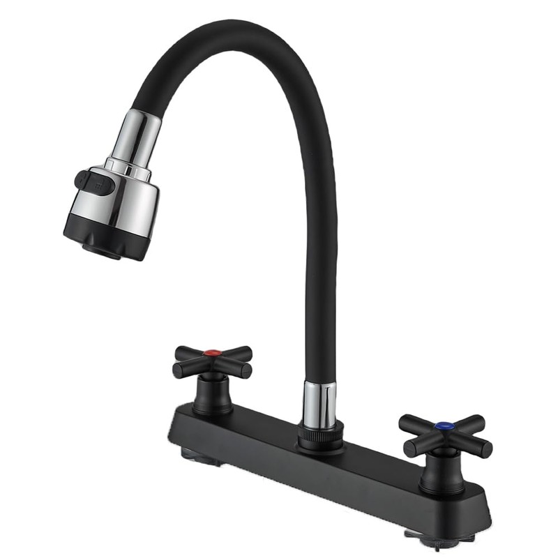 Kitchen Sink Mixer Tap Caravan Monobloc Campervan Tap Camping Sink Tap with 2 Handles Flexible Arch 360 Swivel Flexible Dual Function Sprayer for Marine Boats Campers Motorhomes Travel Trailers Black