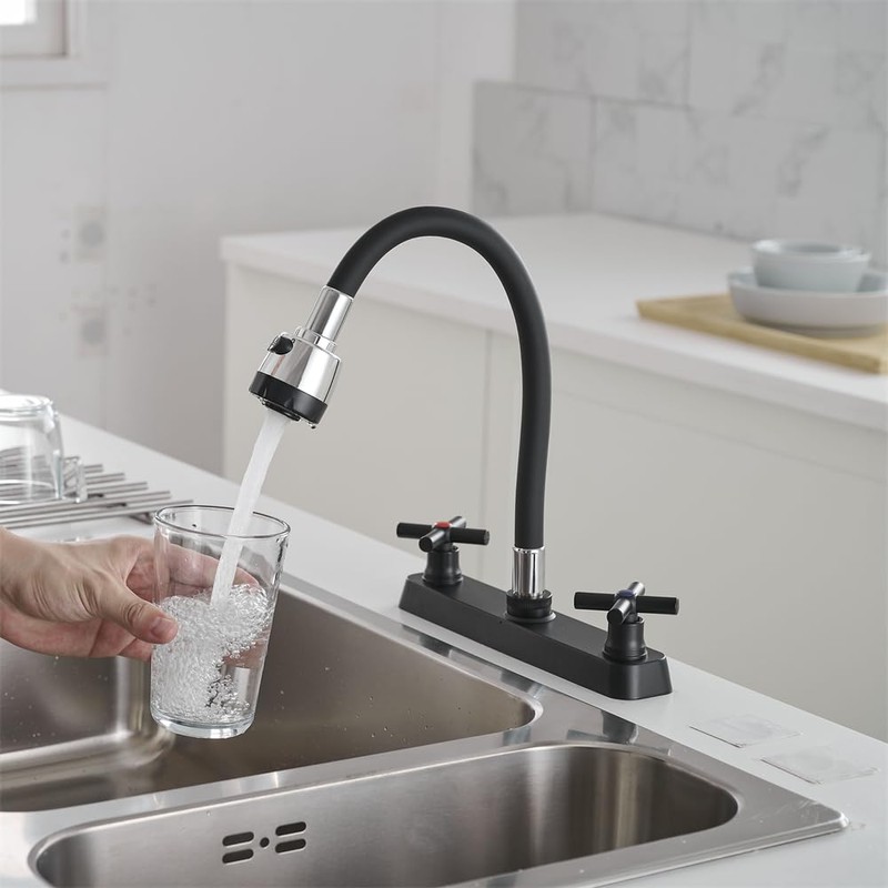• Sleek Design for RV Sink: RV kitchen sink tap is constructed of silicone arch and lightweight ABS plastic 8-inch body, replacement tap for RVs, motorhomes, campers, trailers; Black finish easy to match most sink