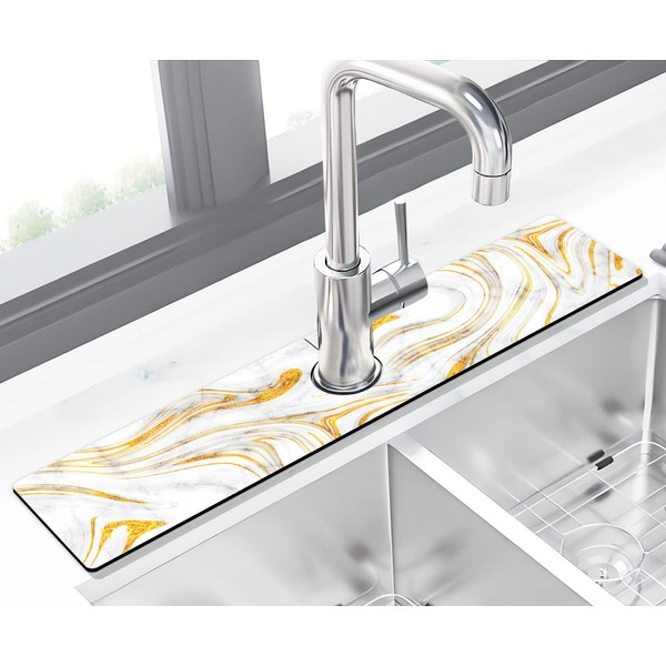 Kitchen Sink Splash Guard Faucet Mat -1 PC Super Absorbent Fast Drying Mat Sink Gadgets-Splash Guard Behind Faucet Drip Catcher for Kitchen, Bathroom,Sink Mat, Dish Drying Mat, Bathroom(23.5" X 5.5" )