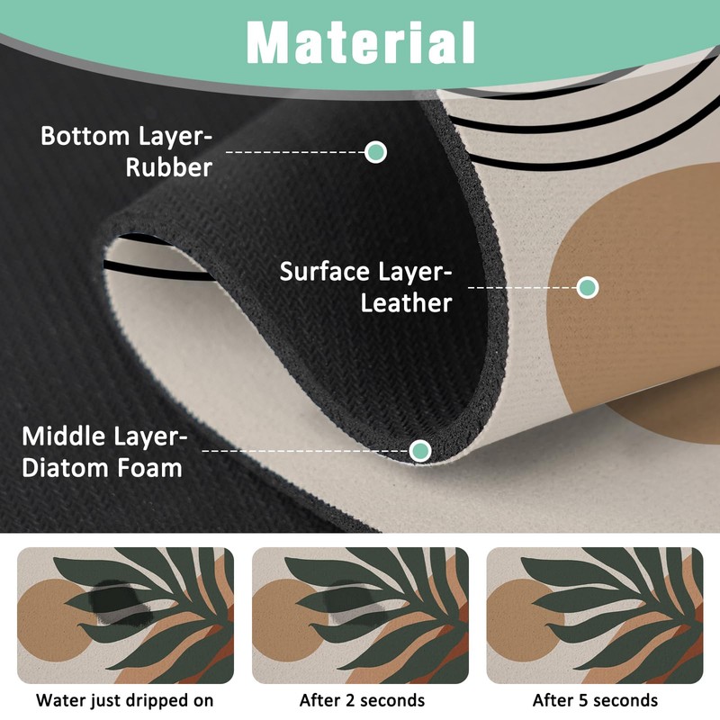 - Strong Absorbency Material: Because the sink faucet mat is made of super absorbent diatom mud, it has sufficient absorbency, which can quickly absorb liquid and catch water splashes to keep your counters dry and clean.