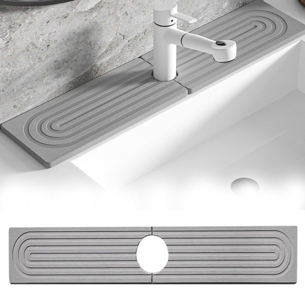 Kitchen Sink Splash Guard,Faucet Mat for Kitchen Sink,Long Diatomite Fast Drying Stone Sink Tray,Super Absorbent,Prevents Moisture Buildup,Faucet Splash Guard for Bathroom Counter (Grey,23.6" x 3.9")