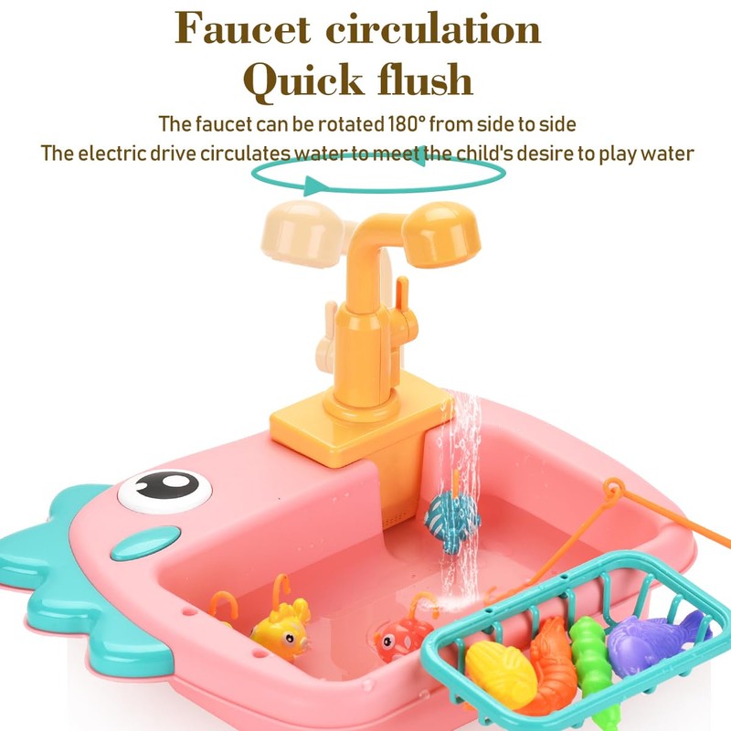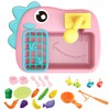 Kitchen Sink Toys with Running Water and Electric Faucet Automatic Water Cycle System,Play Kitchen Toy Accessories for Toddler,Pool Floating Fishing Toys,Pretend Play (Pink dinosaur Sink toy)