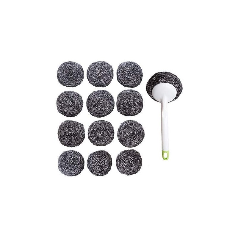 - ✔️ 12 COUNT WITH BONUS STEEL SCRUBBER HANDLE – Our pack includes 12 high quality scourers with a bonus handle. Protect your hands and easily attach a scourer to the included handle. With long gripping teeth, the handle has been specifically designed to help you clean with the comfort of keeping your hands clean and dry while the scourer does all the work!