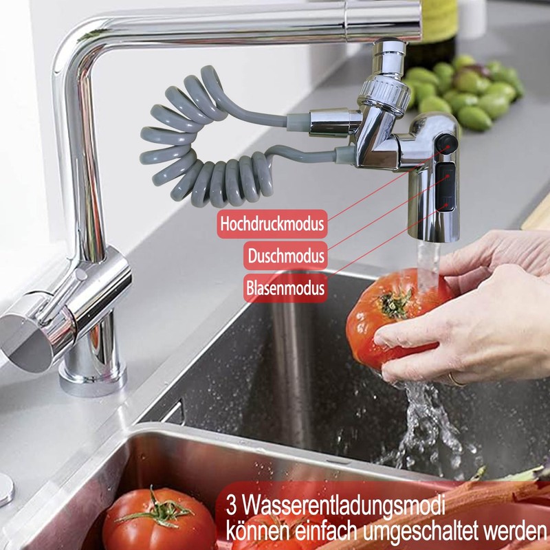 - 3 water outlet modes can be easily switched: in addition to the two water outlet modes, sprinkler mode and bubbling mode, this rotating tap attachment also has a high pressure rinse mode, which can be easily switched by buttons as needed, even if you have water on your hands, you can easily switch between them