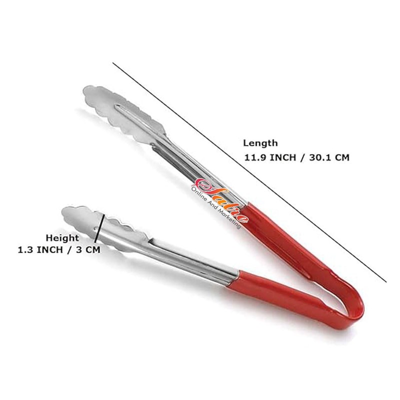 Stainless Steel Kitchen Food Tongs or Ice Tongs Set of 2 (Silver and Red Color). high quality stainless steel Easy to clean Strong and durable Helpful in holding a hot utensil while cooking to stir food, or to remove hot cookware from a stove. It can be used to lift, flip, turn and rotate