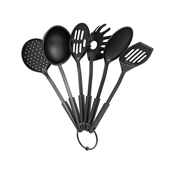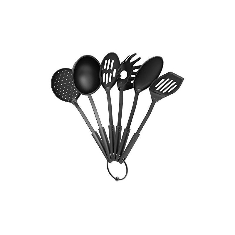 Kitchen Utensil and Gadget Set- Includes Plastic Spatula and Spoons by Chef Buddy- Cookware Set on a Ring (Six Piece Set)- Kitchen Essentials
