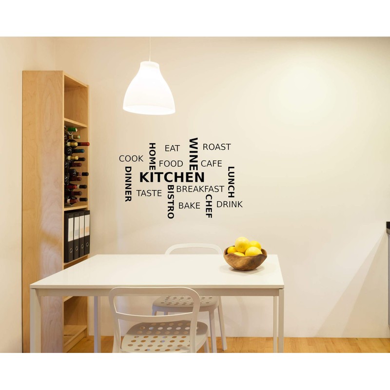 Kitchen Words Wall Stickers for Kitchen - Breakfast, Lunch, Dinner, Wine, Cafe Kitchen Stickers (50cm x 24cm, Black)