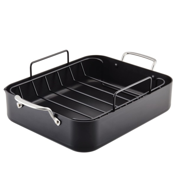 KitchenAid Hard Anodized Roasting Pan/Roaster with Removable Rack, 13 Inch x 15.75 Inch, Matte Black