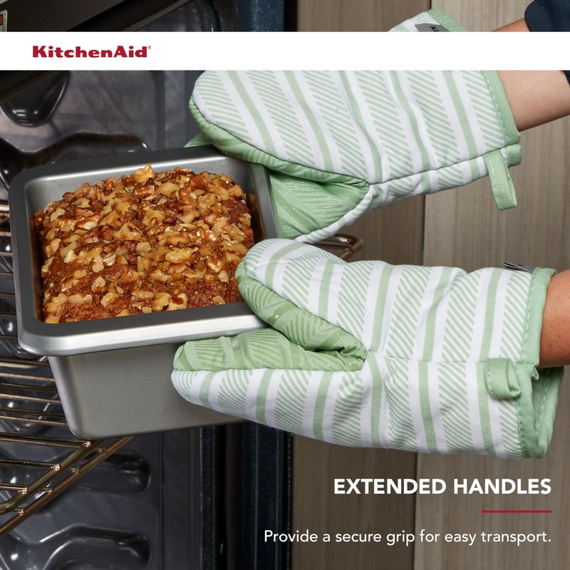 • EXTENDED HANDLES: provide a secure grip for easy transport, making transferring pan in and out of the oven safer and simpler, even when wearing pot holders