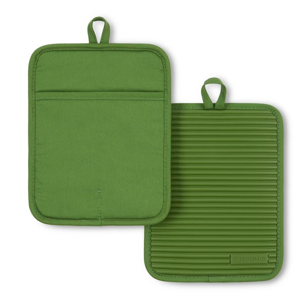 KitchenAid Ribbed Soft Silicone Pot Holder 2-Pack Set, Matcha, 7"x9"