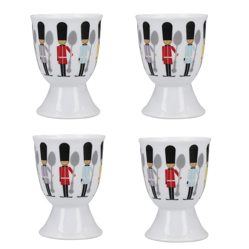 - Lustiges Design: Diese fröhlichen Kinder-Eierbecher zeigen Reihen von Soldaten, die stillstehen
