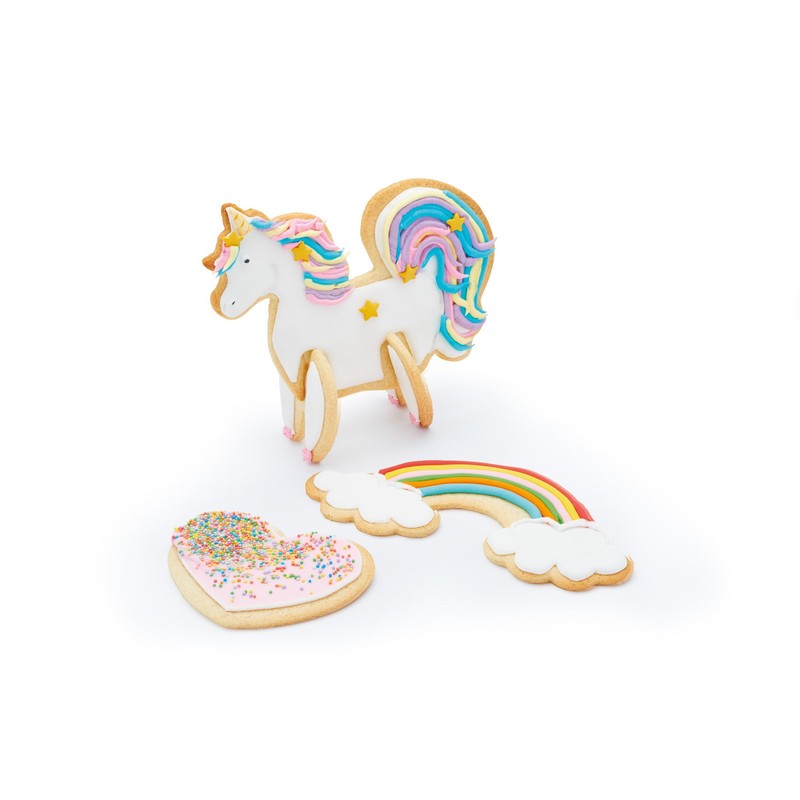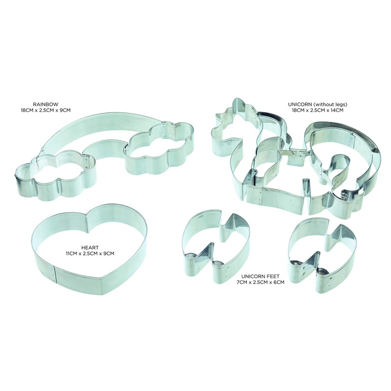 • Includes 5 easy-to-use cutters, made of high-quality, food-safe aluminium: a unicorn body, 2 sets of legs, a rainbow and a love heart