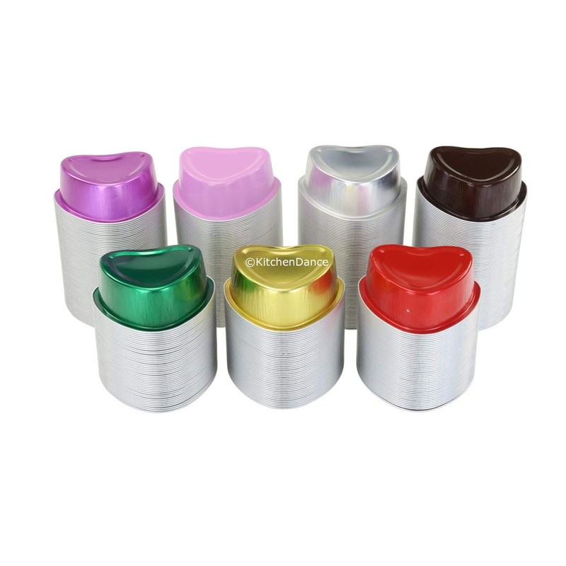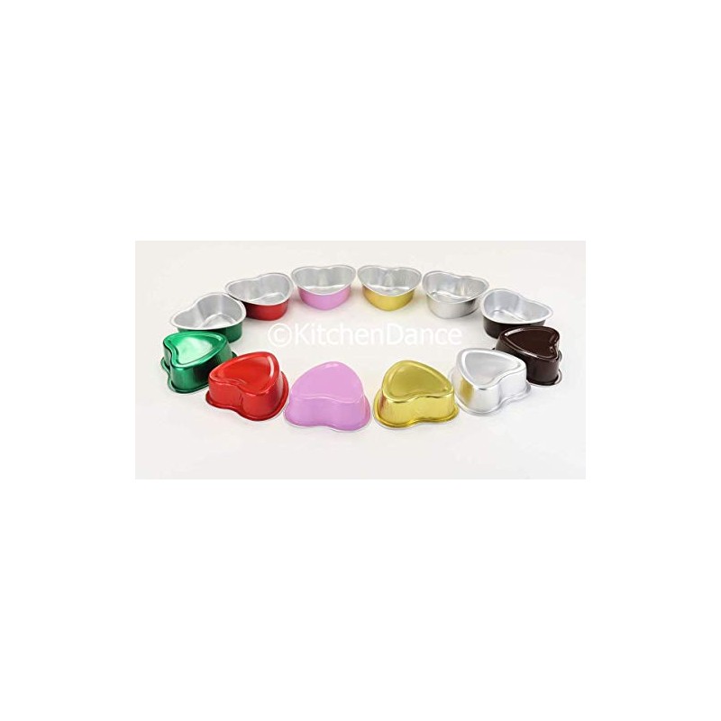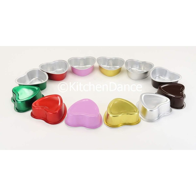 KitchenDance Colored Aluminum Mini 3.5 oz Heart Shaped Dessert Pans (50, Red)