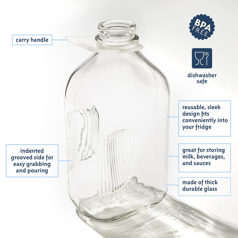 - MADE IN THE USA: Don't compromise on quality when storing your beverages or milk. Kitchentoolz thick glass bottles are durable, crack-resistant, BPA-free, and dishwasher safe. Made with thick durable glass for everyday use.