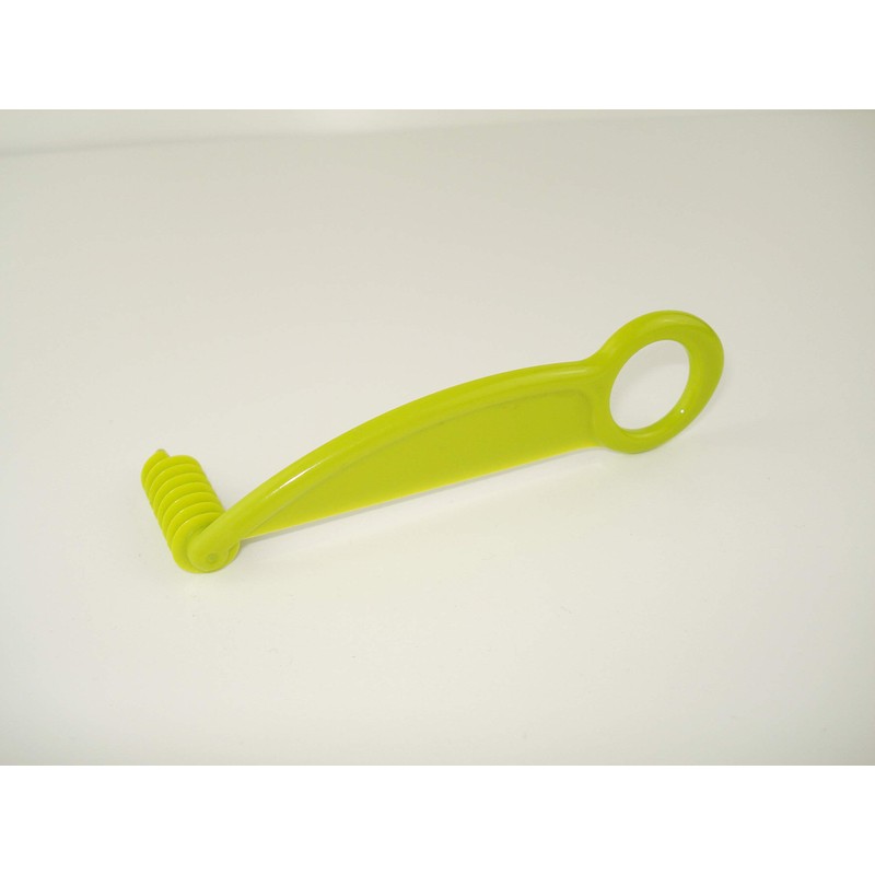 Tupperware Veggie Spiral Gadget in green is a great way to make spiral veggies, garnishes, and spiral potatoes. Simply insert the screw into the end of your food, insert your finger into the loop and turn! Made from BPA Free plastic and dishwasher safe.