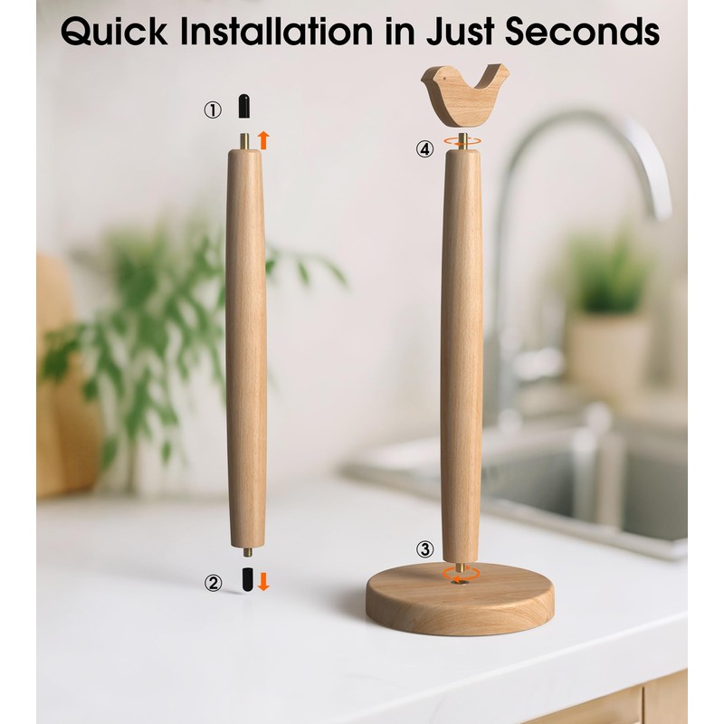 - [Stylish & Sturdy] Whether you're cooking up a storm or cleaning up a spill, our wooden paper towel holder is the perfect addition to any kitchen. It's sturdy, functional, and stylish all at the same time.