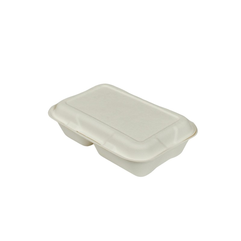 Kitchsy Disposable White Hinged Clamshell Take Out Food Containers Heavy Duty Containers for Restaurants, Food Trucks, Meal Prep (2 Compartment - 9 x 6 x 3) (50 PACK)