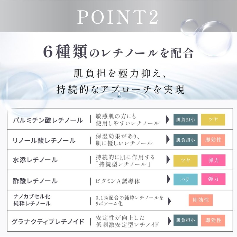 - Formulated to reduce the burden on your worry skin: Formulated with 6 types of retinols that are the highest standard in the industry. We focused on the formula that reduces the burden on the skin. In addition, the world's first natural nanodized, humanoid shaped ceramide, cica (zubusa) extract and Niacinamide, a retinol serum that concentrates your desire into one piece