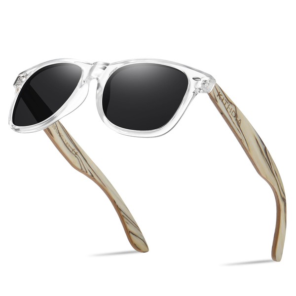 KITHDIA Men's and Women's Dark Walnut/Zebra Wood Temple Sunglasses Polarised S5505